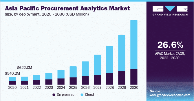 The global procurement analytics market is projected to reach $18.18 billion by 2030 with a CAGR of 23.6% from 2022 to 2030.